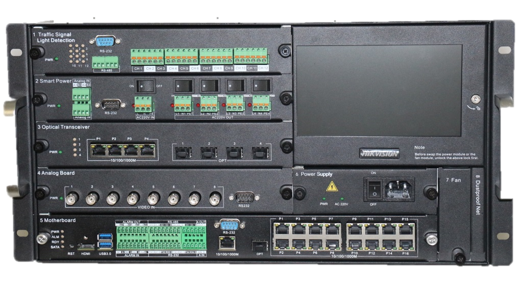 负责完成车辆综合信息的采集,包括车辆特征照片、车牌号码与车牌颜色等。并完成图片信息识别、数据缓存以及压缩上传等功能,主要由卡口抓拍单元、补光灯、爆闪灯、终端服务器、外场工业交换机、光纤收发器、开关电源、防雷器等设备组成。