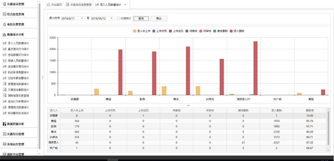 内网PC端,承载智慧执法平台的BS客户端,实现PDA终端的勤务数据统计。